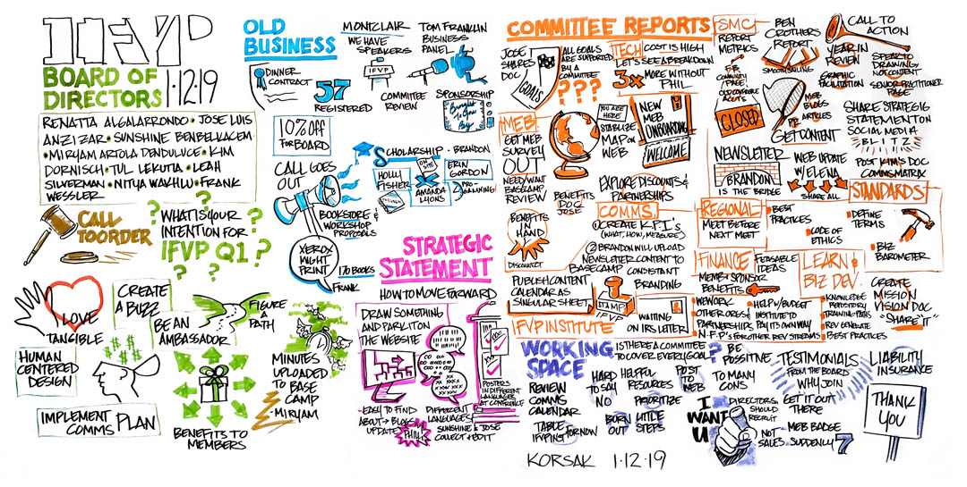 How do you get better at Visual Practice? The first time I asked myself this was after a compliment. “Your work is beautiful, but you have to get faster...most PATHs should only be about 45 minutes," Bridget, lead trainer and PATH process facilitator, said. The last one ran just shy of two hours–oops. “As the graphic facilitator your role is to capture the ideas quickly and succinctly.” At the time, I didn’t know about Visual Practice or that IFVP existed: Google was my only hope.
