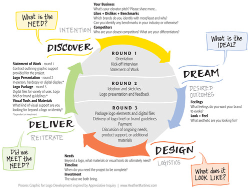 This is the third post in a series documenting my approach to logo and identity creation. You may recall the Appreciative Inquiry (AI) graphic from The Power is in the Process post.