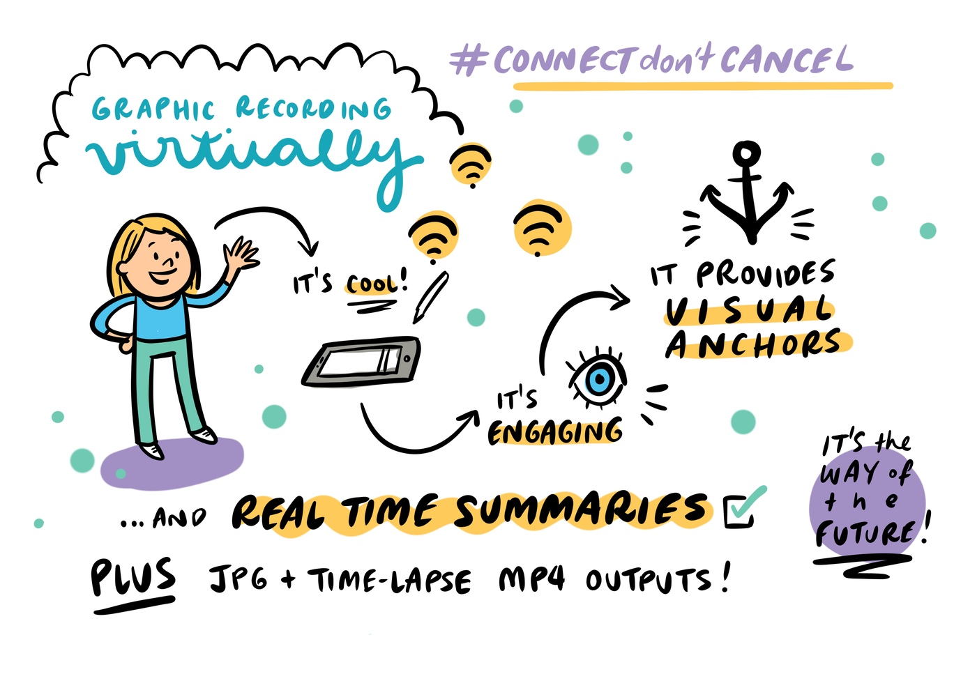 Having real-time graphics in your virtual meeting or workshop provides a visual anchor that makes content easier to follow for participants, and brings a sense of unity to a session that is physically disconnected.