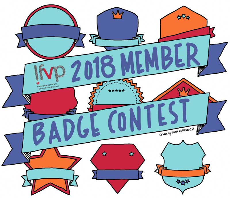 An official badge from a professional organization denotes adherence to a standard of professionalism and quality by the badge owner. In addition, in the mind of your Board of Directors, this is the mark that shows you, as an IFVP member, belong to a community that encourages generosity, learning, and growth. It means you are a part of something committed to the advancement of graphic recording, graphic facilitation, visual facilitation, and other visually supported processes as valid business tools to collaborate, design, and solve problems.