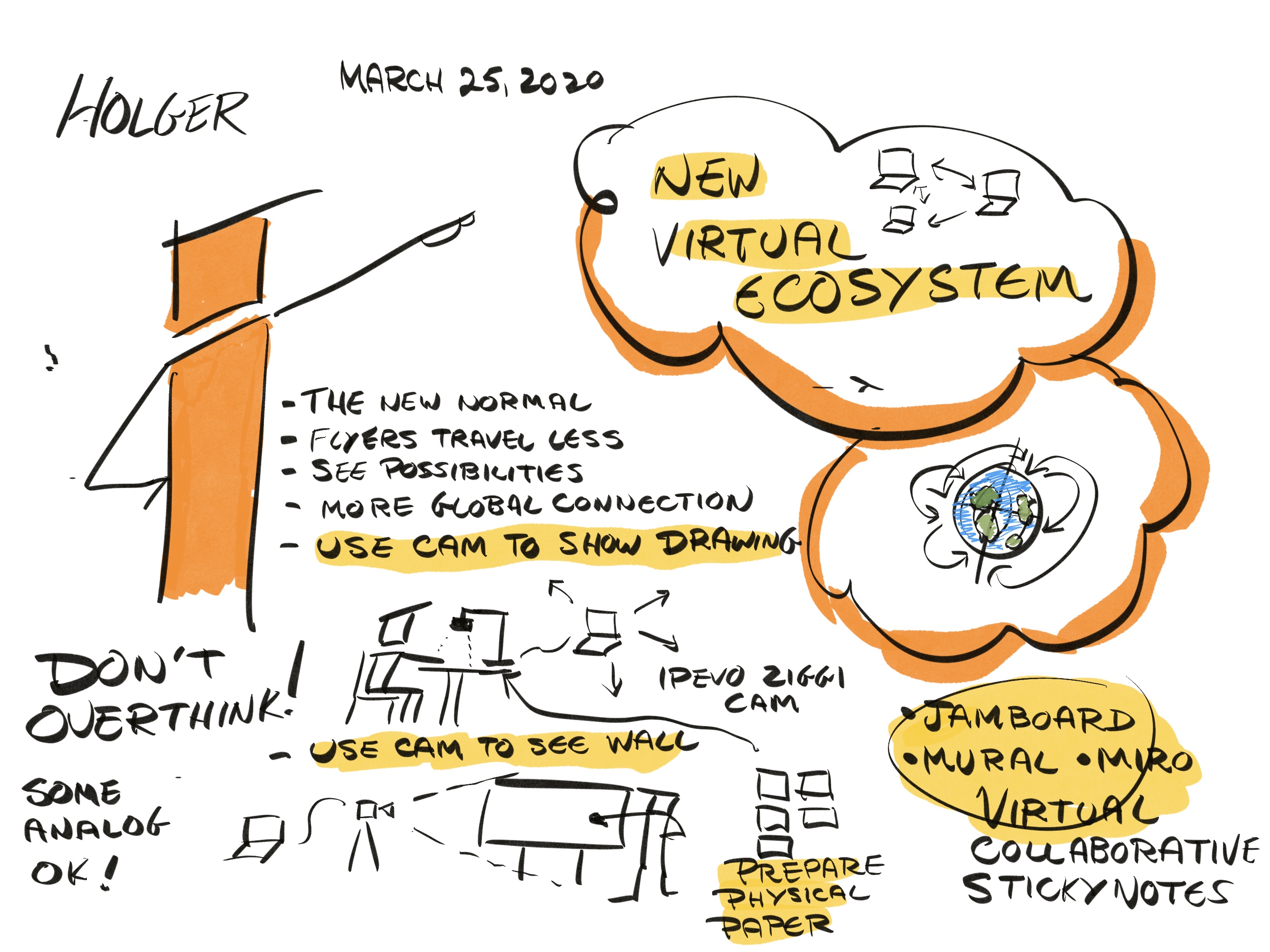 Early in the COVID restrictions Holger offered some trainings on making the virtual pivot in our work. I've valued his trainings and support in the field over the years, and was pleased with my visual notes from his zoom call.