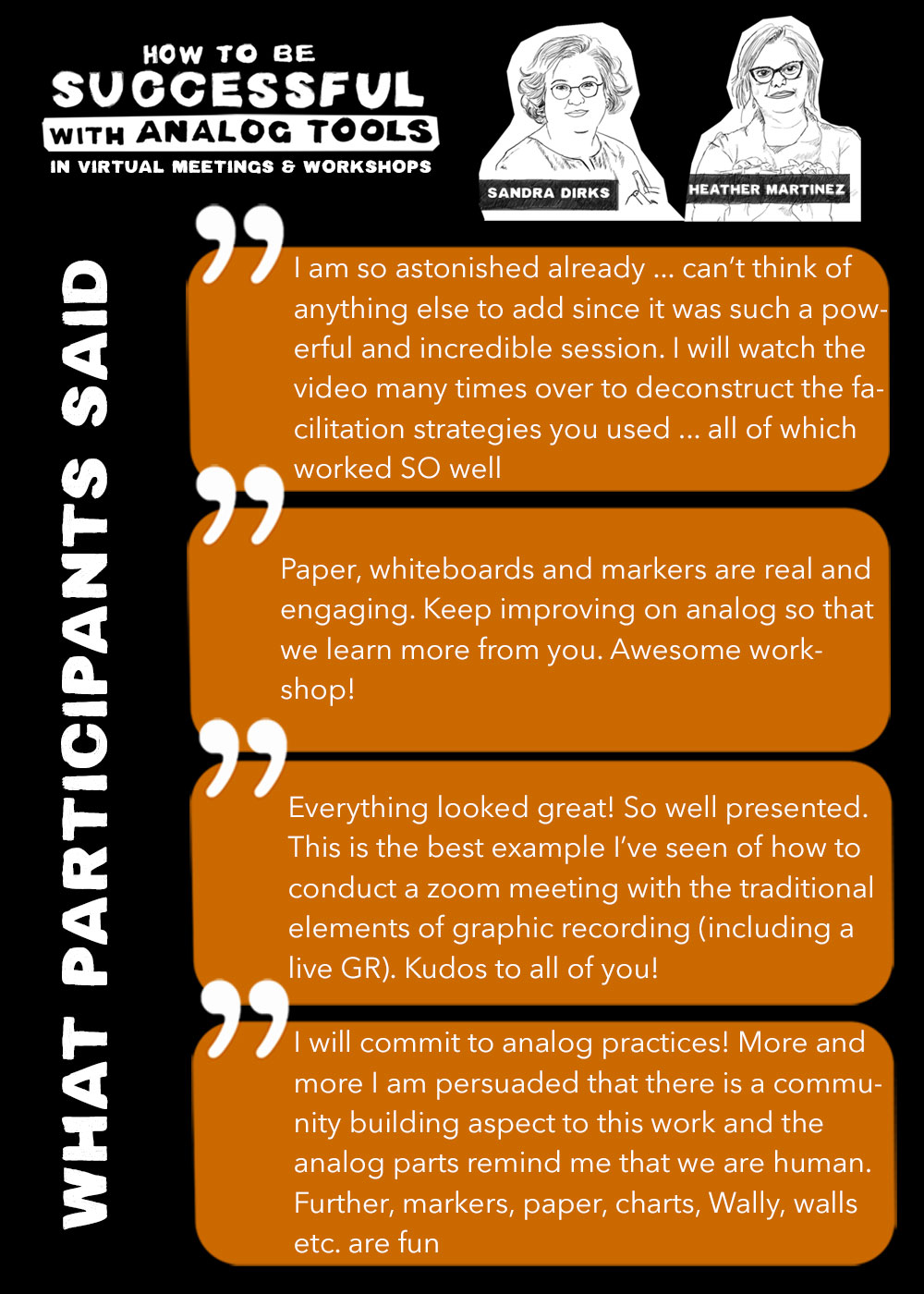 Sure, you have our blessing. Where would we be if we had to do this whole online thing without flipcharts, markers and all the other great analog tools we generally use in our job? Bring your flipchart and all the stuff from your workshop bags and we will share best practices to successful in your online sessions.