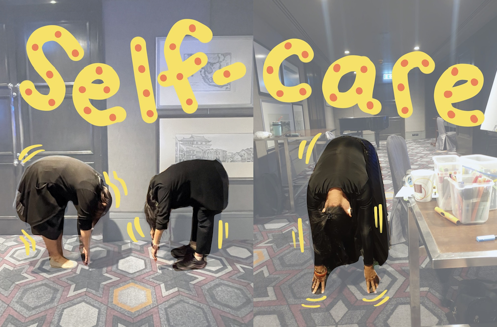 Here’s one example of how we do it. On the day of the event, we warm up with some stretching.