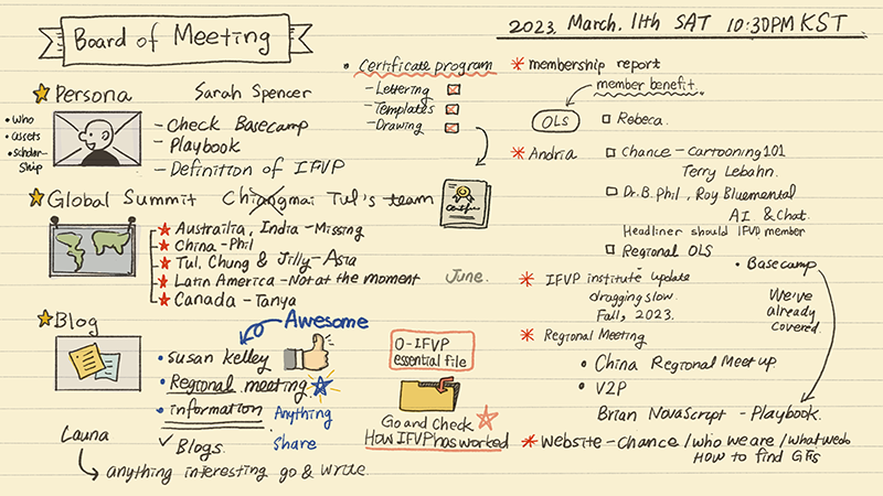 Time zones are challenging! We are grateful that our board members from Asia are willing to stay up late, and not only be present but be fully engaged in our work together. Jihyunn Lee created the image above, and Phil Guo shared this image of his workspace during our meeting. What a gift to work with this committed group!