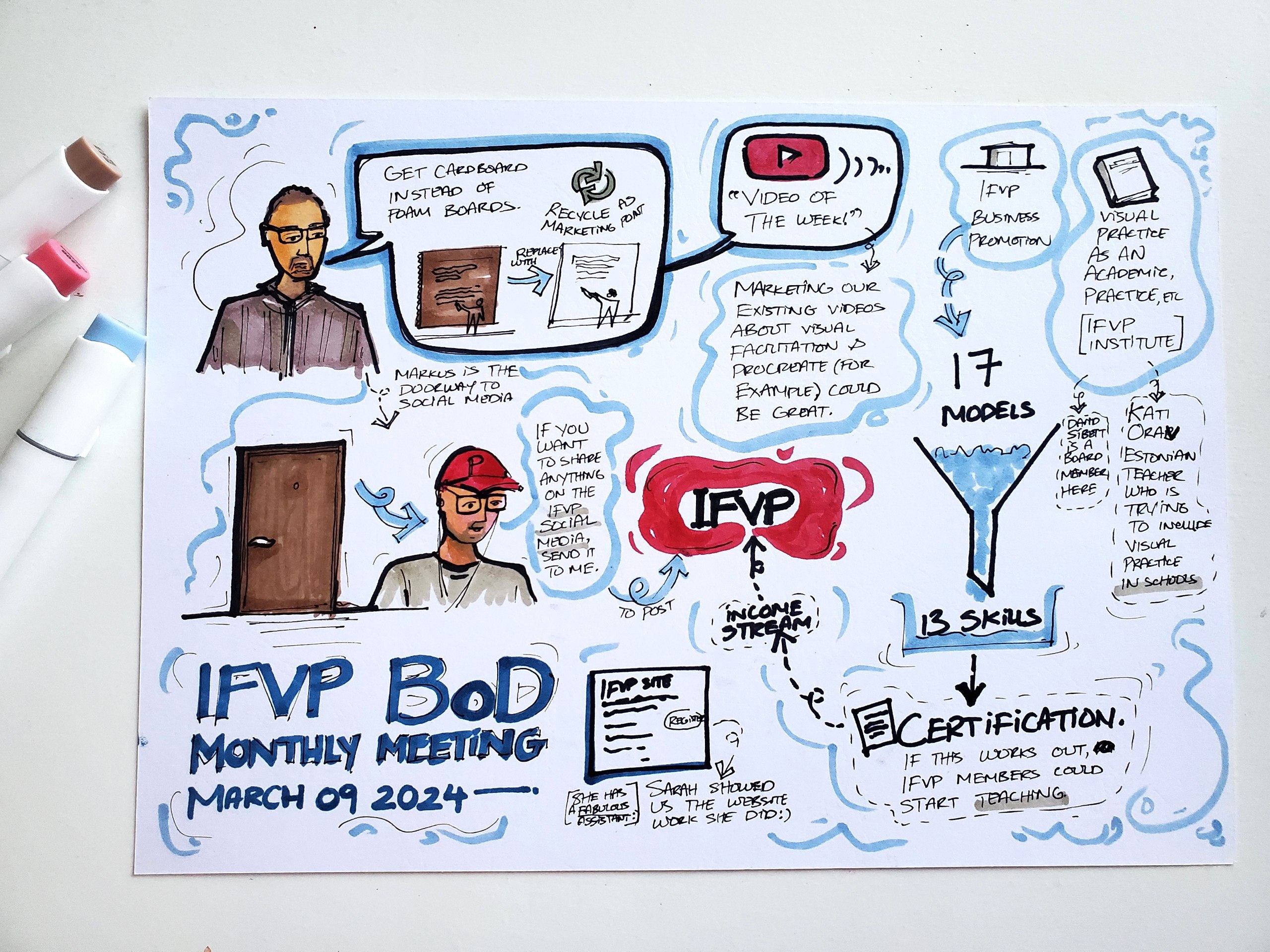 Halfway through the meeting, I pulled out my alcohol markers and started creating a quick visual note of our meeting. It's not comprehensive, but I wanted to have a visual snapshot of our call. I look forward to actually meeting these people someday, though.