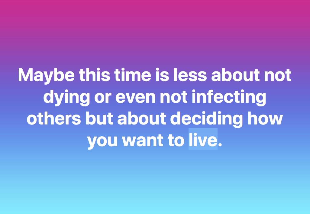 I would add that as we decide how we want to live perhaps there is a good kind of infectious we could be.