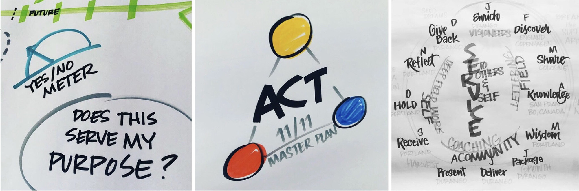 As visual practitioners, some of the most valuable tools and assets we have can be turned on ourselves. For those new to the field, you can use what you have learned in your trainings to use with your clients—whether it’s formal training from places like The Grove, Bikablo or the giants who came before us—or new influences you have experienced on the job.