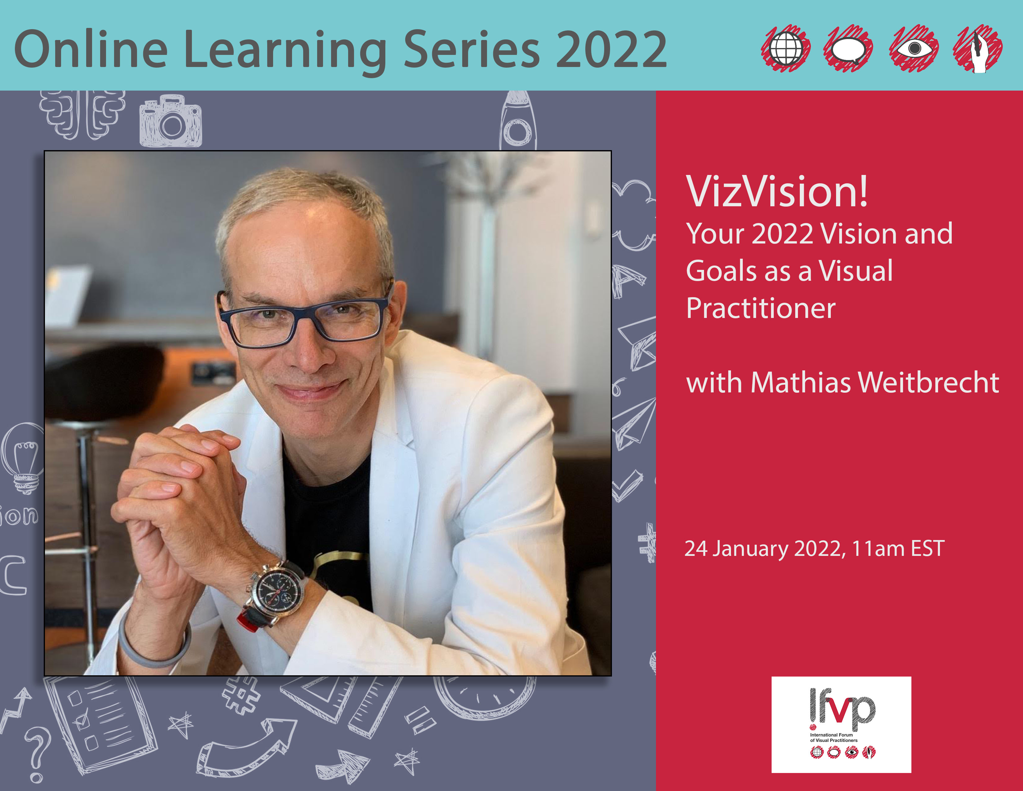 VizVision! Your 2022 Vision and Goals as a Visual Practioner with Mathias Weitbrecht You live in turbulent times! Navigating yourself and your business might be a challenge. How to make 2022 your year of transformation? One thing: You need to know what you want! If not, then... -