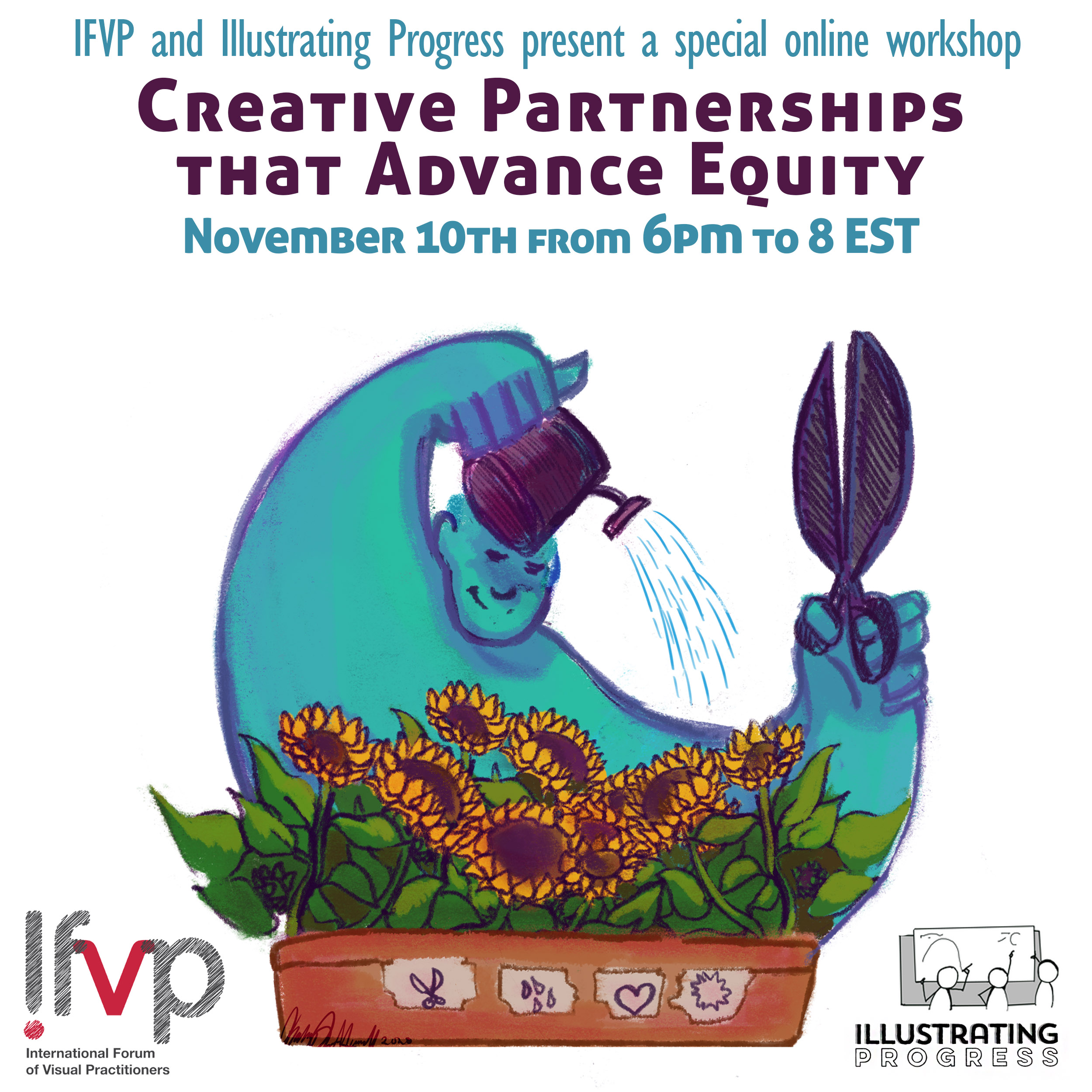 CREATIVE PARTNERSHIPS THAT ADVANCE EQUITY When: NOVEMBER 10, 2020 from 6 to 8pm Eastern Standard Time What: IFVP presents a two-hour workshop for graphic facilitators on embracing diversity, building partnerships, and growing more equitable practices into visual practice, no... -