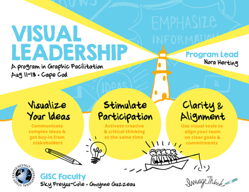 Join us in beautiful Cape Cod August 11-13, 2016 and learn to become a better leader! Visual Leadership is a program in Graphic Facilitation for consultants, teachers, leaders, facilitators, project managers, and anyone in between. Led by co-founder of ImageThink Nora Herting...