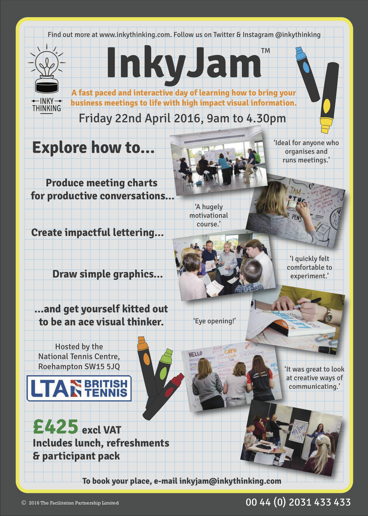 InkyJam™ is designed for people who organise, run or facilitate meetings. These could be team meetings, project updates, or any meeting where people come together to get things done. The Inky Thinking team will explain, in four 'mini-jams', how to select and create the right... -