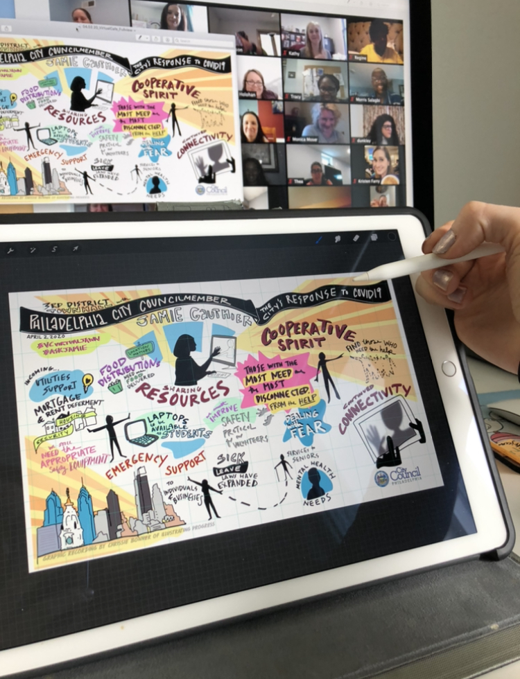 Chrissie is a facilitator, teacher, author, and illustrator. Her interest in visual work is rooted in cultivating the mindsets necessary for transformative change and designing environments for people to be creative and do their best thinking.