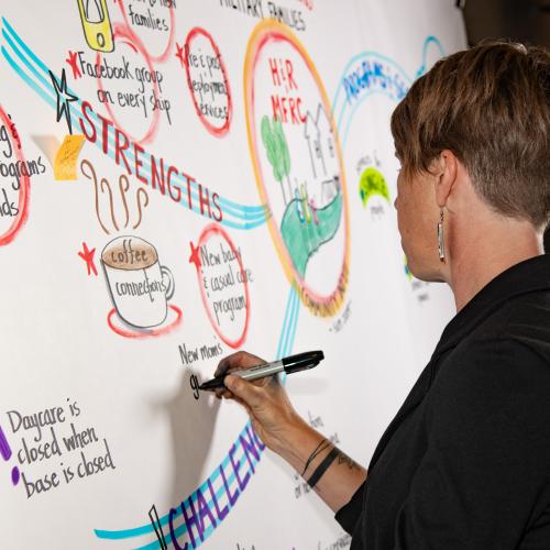 Corrie Melanson, MA, is an experienced process facilitator, trainer, and graphic recorder based in Halifax, NS. As a graphic recorder, Corrie listens intently to capture key messages and outcomes, propelling group work to a new level of understanding and action. Her work with participants maximizes group dynamics, validates different learning styles, results-oriented approaches that lead to innovative and tangible outcomes. interests, and opinions while focusing on key objectives and outcomes.