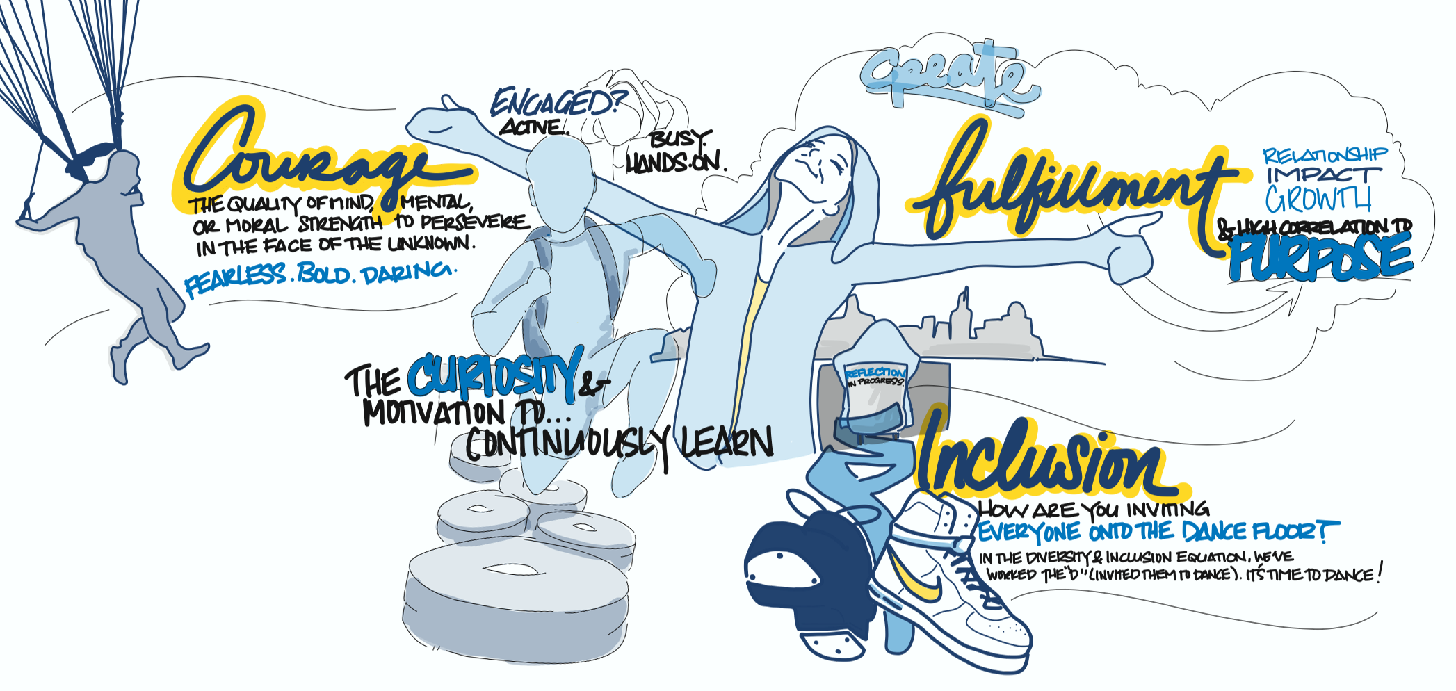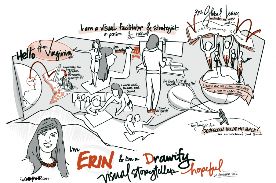 In relentless pursuit to deliver excellence through results that push the creative edge, Erin founded WAYFIND in 2016 to intentionally focus on inspiring a world of purposeful, practical creativity. Since its founding, WAYFIND has facilitated the cocreation of new corporate and talent strategies, led design sprints and visualized countless systems to map the current state and identify new paths forward for public and private industry. Erin increasingly coaches leaders and teams utilizing agile methods and leading practices as a certified agile coach (ICP-ACC), MBTI® practitioner and DiSC® facilitator. She also designs and delivers workshops and training for facilitating virtual collaboration and leading in virtual environments.