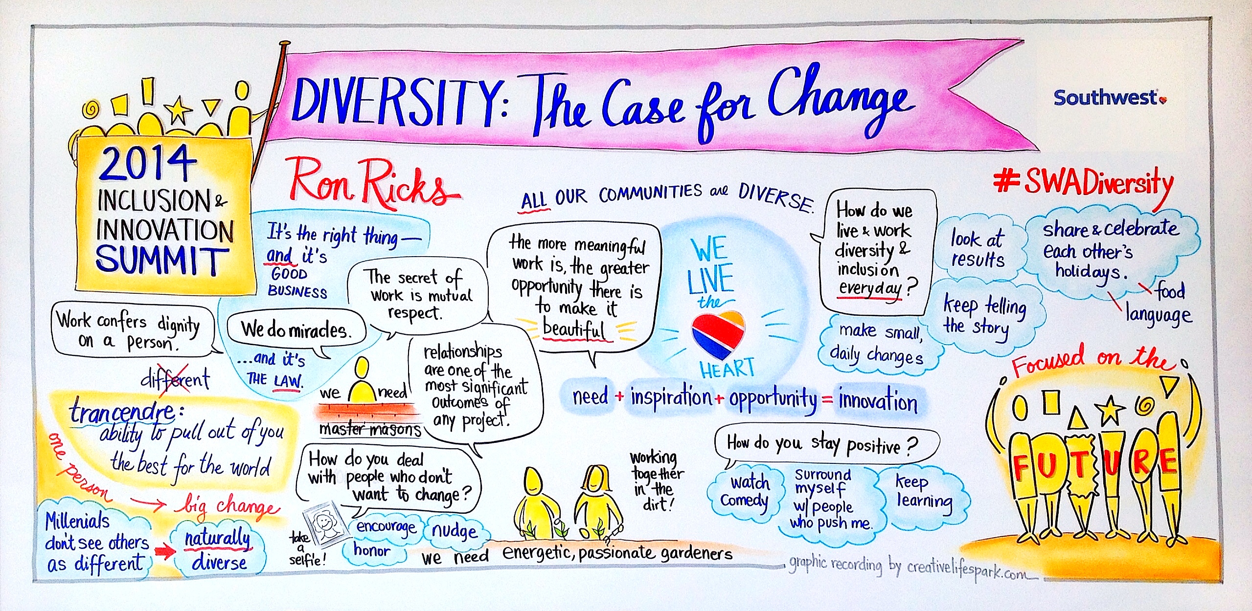As a Graphic Recorder & Facilitator, I literally “draw out” the process work of groups with live, real-time illustrated charts that bring your ideas to life with colorful markers & pastels on mural-sized paper.