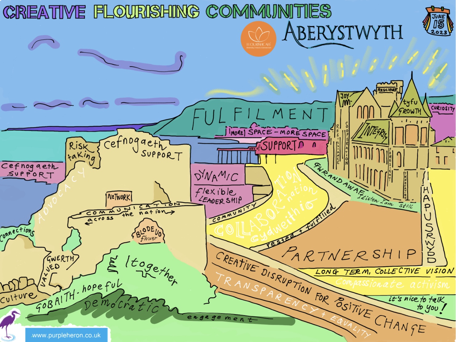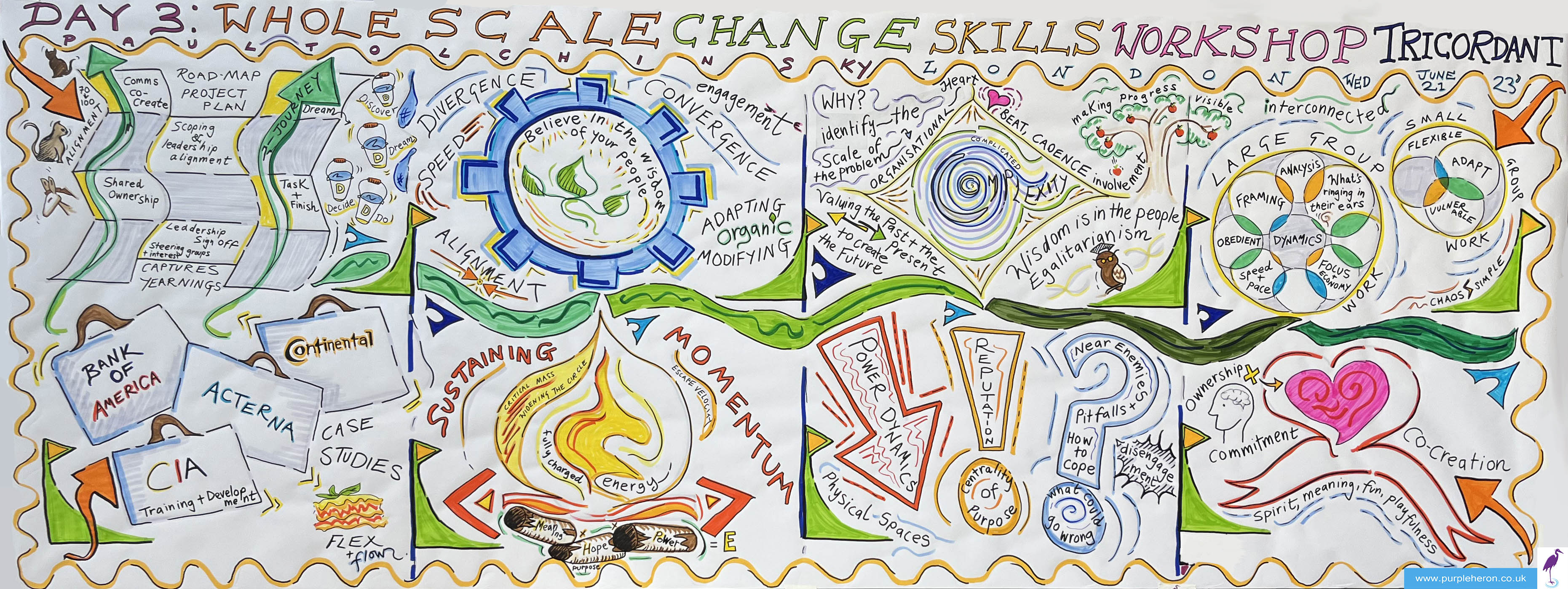 HOW do I do that? Applying deep listening skills with the ability to synthesise dialogue clearly and concisely both in the moment and afterwards into meaningful, colourful and expressive visuals that can be shared, displayed and used as a reference.
