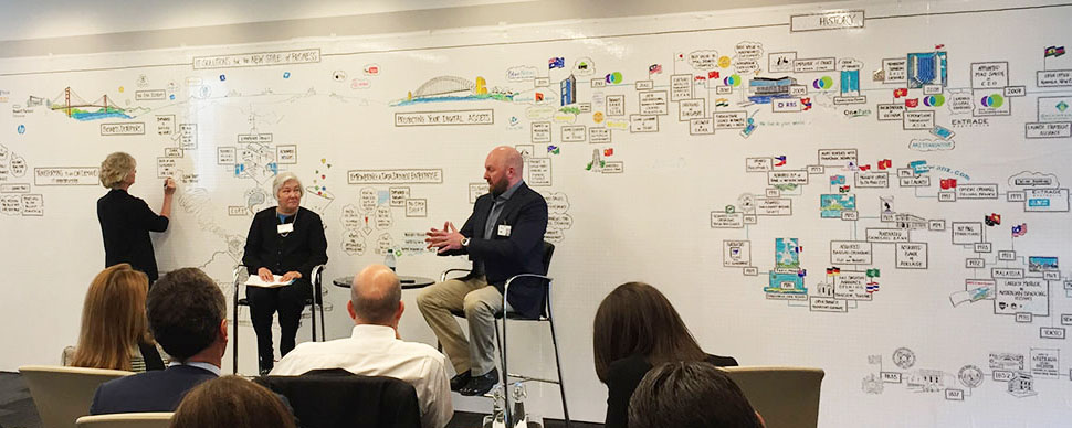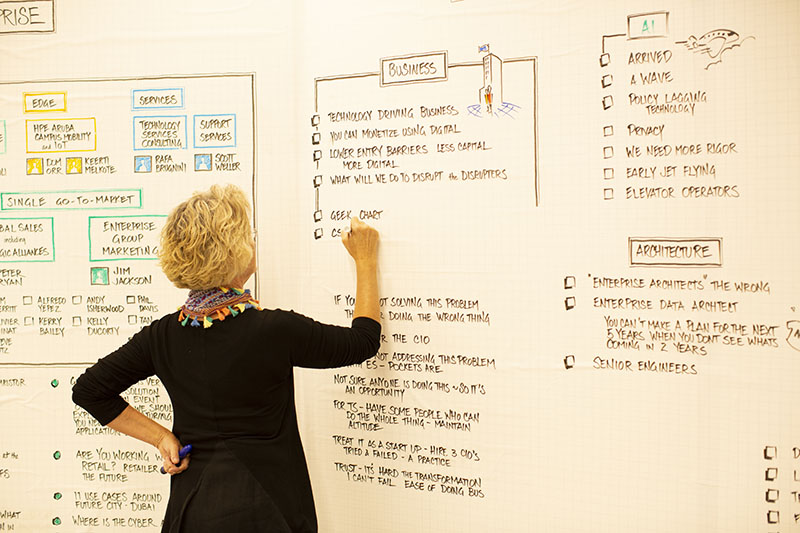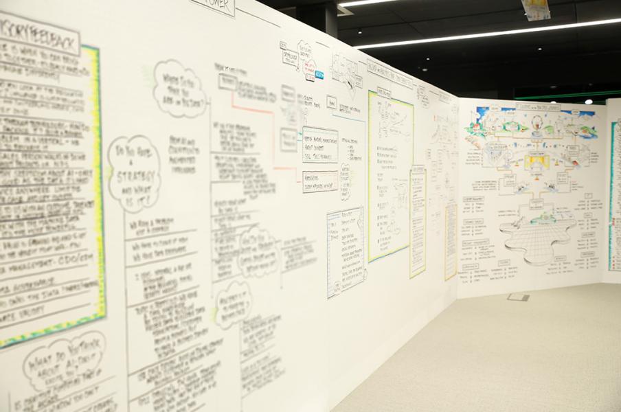 Large scale events, offering Structured Visual Illustrated frameworks that organize thinking to make playbacks and story telling simple