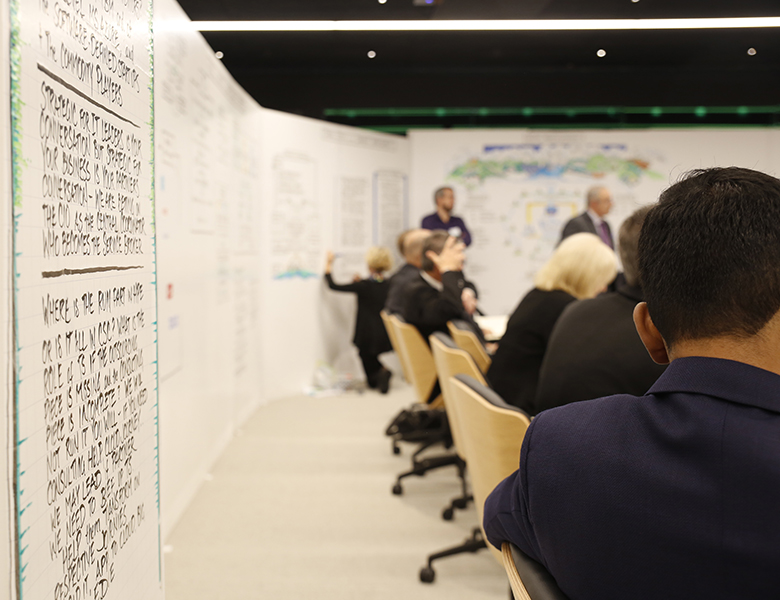 Large scale events, offering Structured Visual Illustrated frameworks that organize thinking to make playbacks and story telling simple