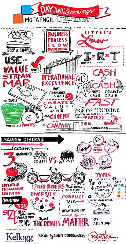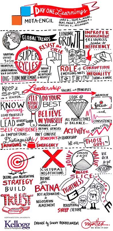 Since 1998, Sunny has captured visuals for sense-making, documenting, brainstorming, proto-typing, explaining, simulating and thinking out complex business problems with facilitation teams at Ernst & Young, Cap Gemini, Accenture, PwC, Deloitte, Matter Group, The Value Web, ImageThink, Ink Factory, Collective Next, Kingman Ink, Integral Leadership and Coaching, 8 Works Consulting, Dpict, and other leaders in the facilitation and coaching industry serving clients like Kellogg School of Management, Abbvie, Michelin, Excelon, Google, Yahoo, Cisco Systems, SAS, Kraft, World Economic Forum, UNICEF, JP Morgan Chase, Mastercard, Chicago Public Schools, and Genpact.